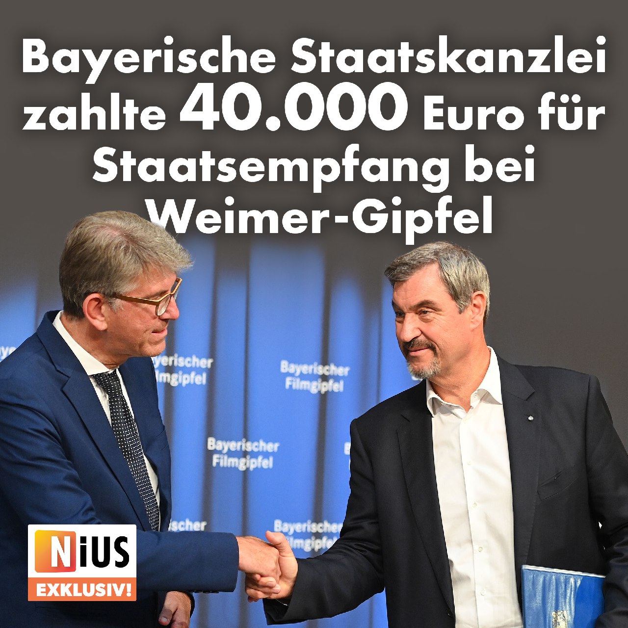 Die Staatskanzlei des bayerischen Ministerpräsidenten Markus Söder (CSU) zahlte rund 40.000 Euro für einen Staatsempfang beim „Ludwig-Erhard-Gipfel“ von Kulturstaatsminister Wolfram Weimer. Dies geht aus der Antwort der Bayerischen Staatskanzlei auf eine schriftliche Frage des AfD-Abgeordneten Oskar Lipp hervor, die NIUS exklusiv vorliegt.