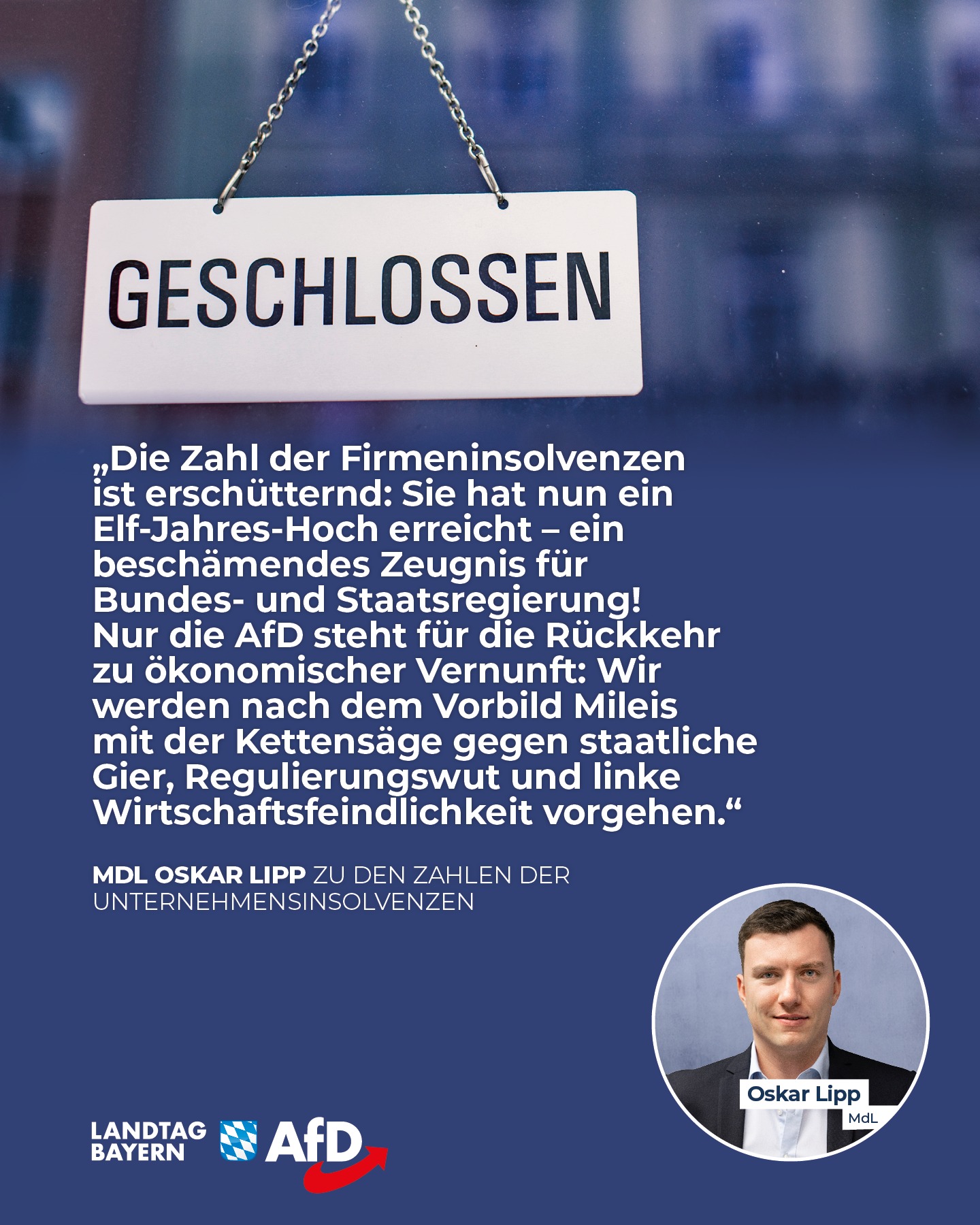 Oskar Lipp erklärt dazu als wirtschafts- und industriepolitischer Sprecher der AfD-Fraktion im Bayerischen Landtag:
