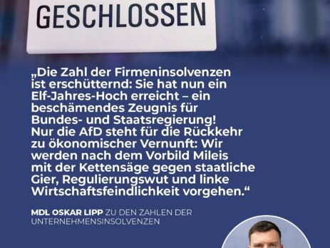 23.900 Firmenpleiten: Elf-Jahres-Hoch – Nur die AfD senkt Steuern und rettet unseren Mittelstand!