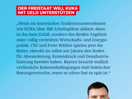 Der angekündigte Stellenabbau bei KUKA (wurde vom chinesischen Investor Midea aufgekauft) ist ein weiterer schwerer Schlag für den Industriestandort Bayern. Wieder trifft es ein Traditionsunternehmen – und wieder kommt aus München nur hektische Krisen-PR statt echter Lösungen. Hohe Energiepreise, Bürokratie, grüne Ideologie und eine völlig verkorkste Standortpolitik haben diese Entwicklung erst...
